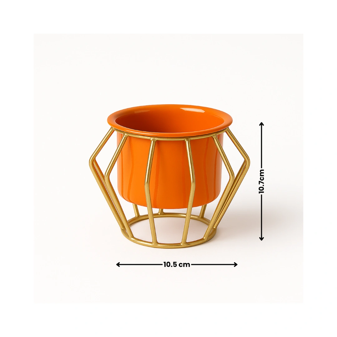 Modern Metal Planter Pot with Golden Stand (Orange)
