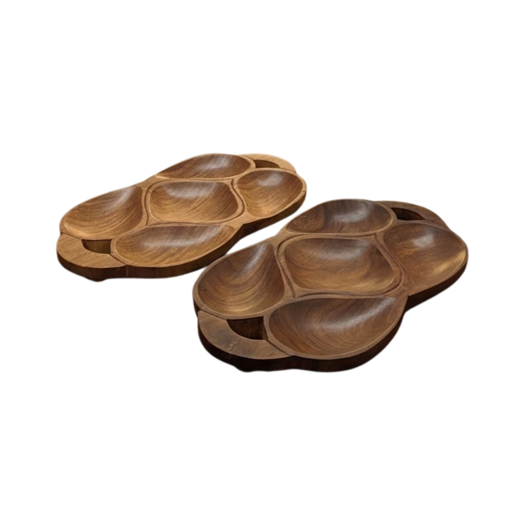 Each server is meticulously handcrafted from premium solid wood, featuring an intricate leaf-vein design that naturally divides your treats into five distinct compartments. Whether you’re organizing a variety of premium nuts, succulent dried fruits, or colorful seeds, this set transforms a simple snack into an artisanal presentation.