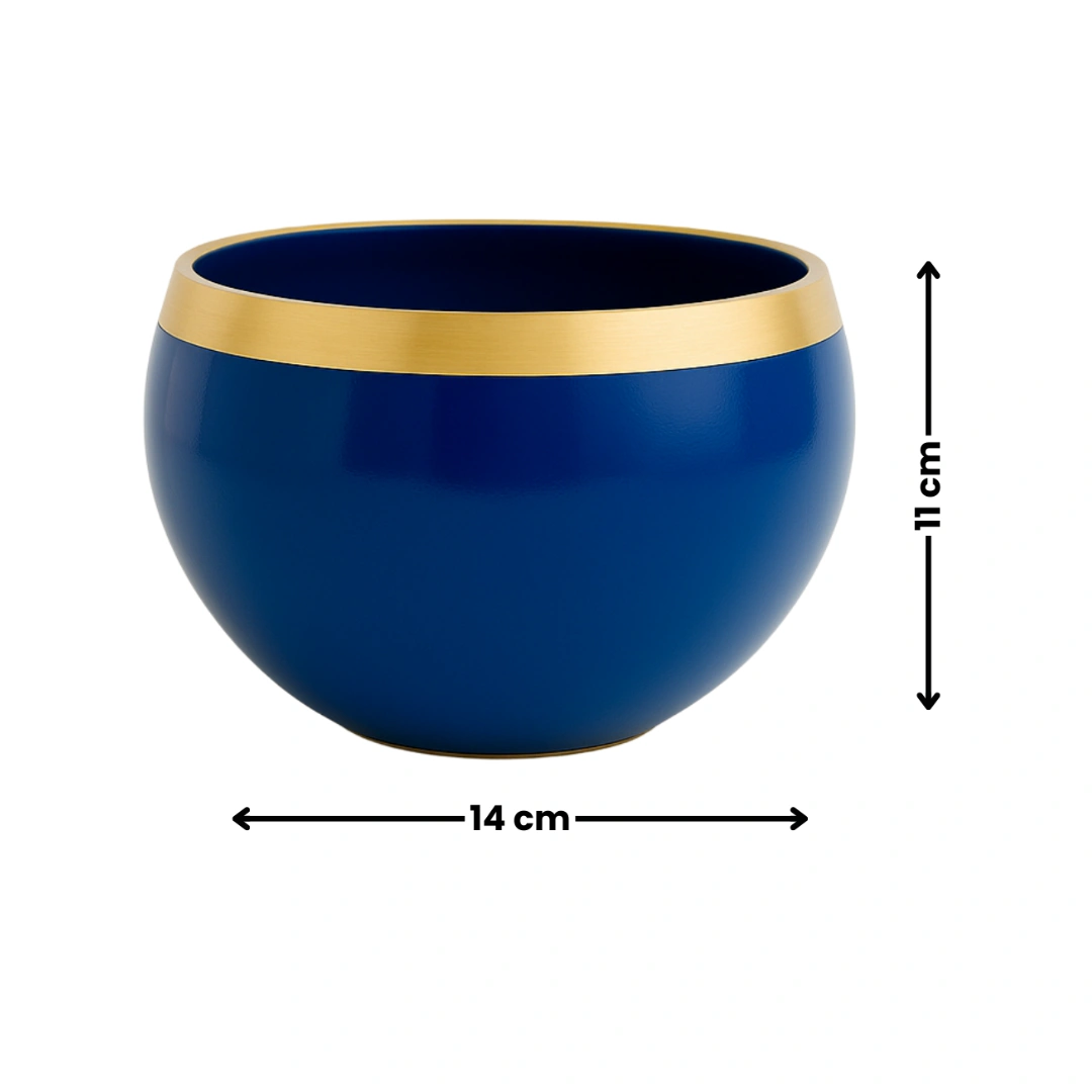 This elegant round metal flower vase and planter pot comes in a rich blue finish with a premium look, perfect for home décor, office spaces, and special occasions.